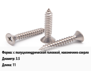 Саморез с полуцилиндрической головкой, наконечник-сверло D=3.5 L=11