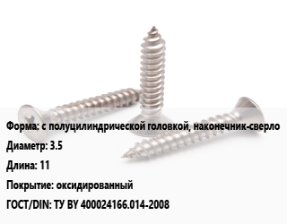 Саморез с полуцилиндрической головкой, наконечник-сверло D=3.5 L=11 оксидированный ГОСТ: ТУ BY 400024166.014-2008
