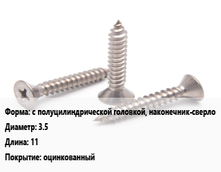 Саморез с полуцилиндрической головкой, наконечник-сверло D=3.5 L=11 оцинкованный