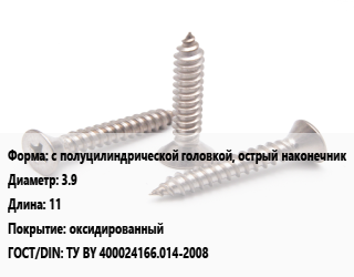 Саморез с полуцилиндрической головкой, острый наконечник D=3.9 L=11 оксидированный ГОСТ: ТУ BY 400024166.014-2008