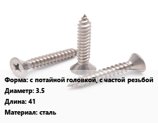 Саморез с потайной головкой, с частой резьбой D=3.5 L=41 сталь