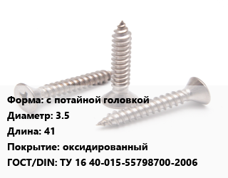 Саморез с потайной головкой D=3.5 L=41 оксидированный ГОСТ: ТУ 16 40-015-55798700-2006