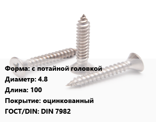 Саморез с потайной головкой D=4.8 L=100 оцинкованный ГОСТ: DIN 7982