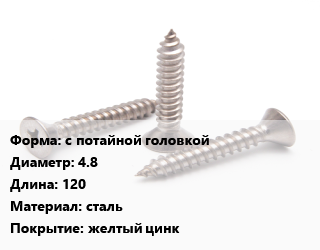 Саморез с потайной головкой D=4.8 L=120 сталь желтый цинк
