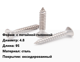 Саморез с потайной головкой D=4.8 L=95 сталь оксидированный