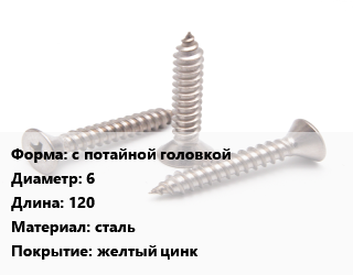 Саморез с потайной головкой D=6 L=120 сталь желтый цинк, упаковка 1000 шт, для дерева цена от 3 345 сом / кг, где купить, условия доставки в Бишкеке и Чуйской области
