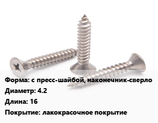Саморез с пресс-шайбой, наконечник-сверло D=4.2 L=16 лакокрасочное покрытие