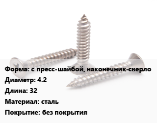 Саморез с пресс-шайбой, наконечник-сверло D=4.2 L=32 сталь без покрытия