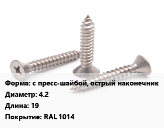 Саморез с пресс-шайбой, острый наконечник D=4.2 L=19 RAL 1014