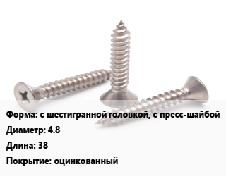 Саморез с шестигранной головкой, с пресс-шайбой D=4.8 L=38 оцинкованный