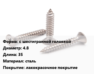 Саморез с шестигранной головкой D=4.8 L=35 сталь лакокрасочное покрытие