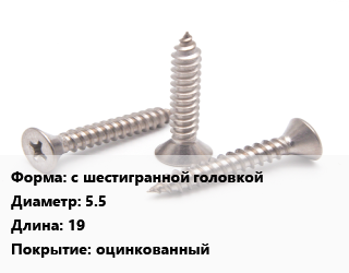Саморез с шестигранной головкой D=5.5 L=19 оцинкованный