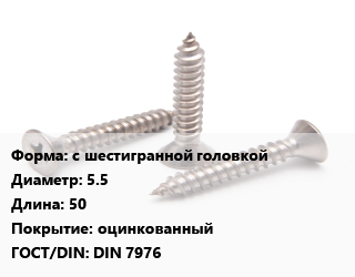 Саморез с шестигранной головкой D=5.5 L=50 оцинкованный ГОСТ: DIN 7976