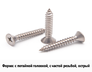 с потайной головкой, с частой резьбой, острый