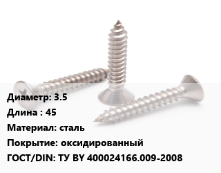 Саморез 3.5 L=45 сталь оксидированный ГОСТ: ТУ BY 400024166.009-2008