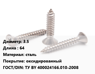 Саморез 3.5 L=64 сталь оксидированный ГОСТ: ТУ BY 400024166.010-2008