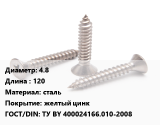 Саморез 4.8 L=120 сталь желтый цинк ГОСТ: ТУ BY 400024166.010-2008