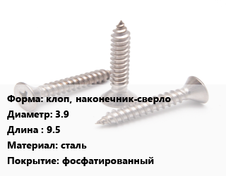 Саморез клоп, наконечник-сверло D=3.9 L=9.5 сталь фосфатированный