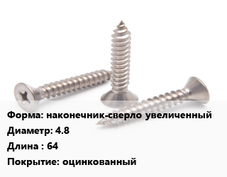 Саморез наконечник-сверло увеличенный D=4.8 L=64 оцинкованный