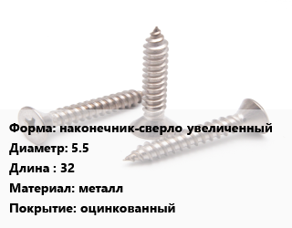 Саморез наконечник-сверло увеличенный D=5.5 L=32 металл оцинкованный