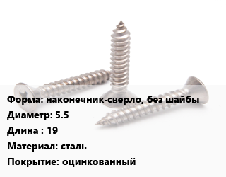 Саморез наконечник-сверло, без шайбы D=5.5 L=19 сталь оцинкованный