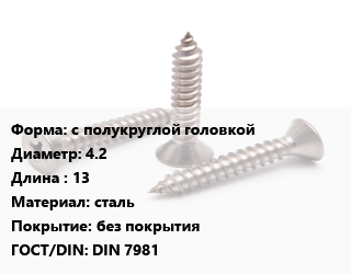 Саморез с полукруглой головкой D=4.2 L=13 сталь без покрытия ГОСТ: DIN 7981
