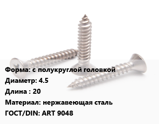 Саморез с полукруглой головкой D=4.5 L=20 нержавеющая сталь ГОСТ: ART 9048