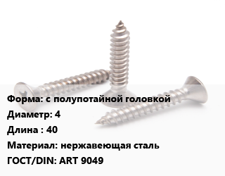 Саморез с полупотайной головкой D=4 L=40 нержавеющая сталь ГОСТ: ART 9049
