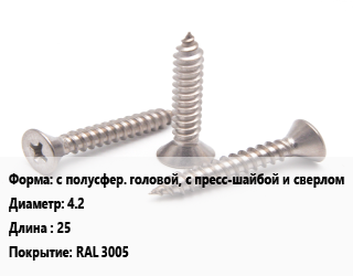 Саморез с полусфер. головой, с пресс-шайбой и сверлом D=4.2 L=25 RAL 3005