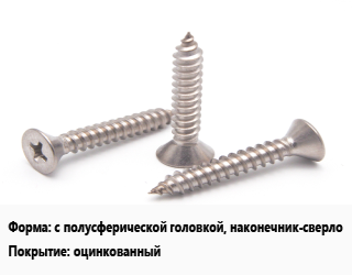 Саморез с полусферической головкой, наконечник-сверло оцинкованный