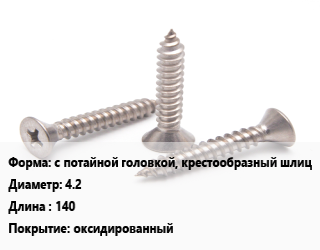 Саморез с потайной головкой, крестообразный шлиц D=4.2 L=140 оксидированный