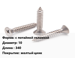Саморез с потайной головкой D=10 L=340 желтый цинк, кг, конструкционный, для дерева, по запросу цена от 29.53 сом / кг, где купить, условия доставки в Бишкеке и Чуйской области
