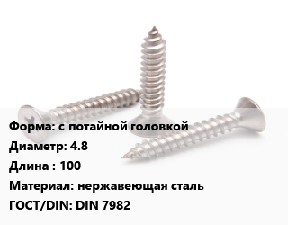 Саморез с потайной головкой D=4.8 L=100 нержавеющая сталь ГОСТ: DIN 7982