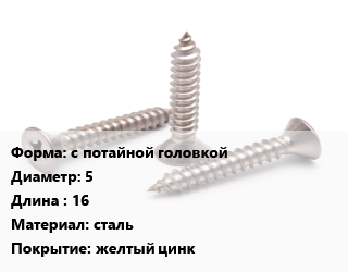 Саморез с потайной головкой D=5 L=16 сталь желтый цинк