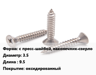 Саморез с пресс-шайбой, наконечник-сверло D=3.5 L=9.5 оксидированный