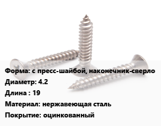 Саморез с пресс-шайбой, наконечник-сверло D=4.2 L=19 нержавеющая сталь оцинкованный
