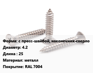 Саморез с пресс-шайбой, наконечник-сверло D=4.2 L=25 металл RAL 7004