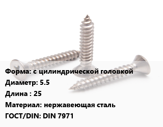 Саморез с цилиндрической головкой D=5.5 L=25 нержавеющая сталь ГОСТ: DIN 7971
