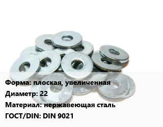 Шайба плоская, увеличенная D=22 нержавеющая сталь ГОСТ: DIN 9021