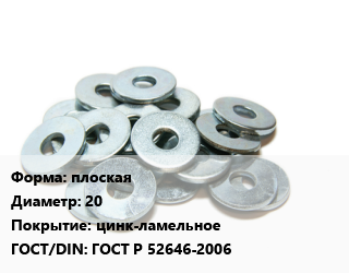 Шайба плоская D=20 цинк-ламельное ГОСТ: ГОСТ Р 52646-2006