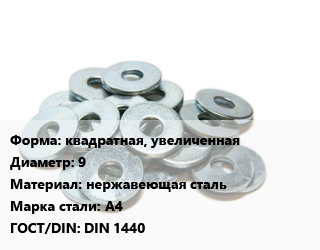 Шайба квадратная, увеличенная D=9 нержавеющая сталь Сталь: А4 ГОСТ: DIN 1440