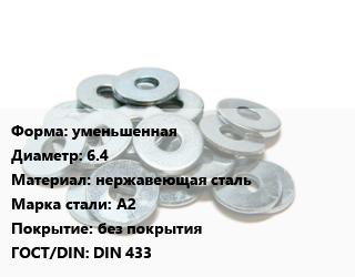 Шайба уменьшенная D=6.4 нержавеющая сталь Сталь: А2 без покрытия ГОСТ: DIN 433