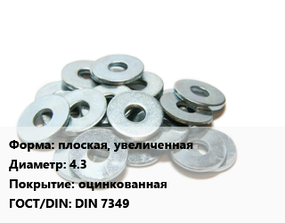 Шайба плоская, увеличенная D=4.3 оцинкованная ГОСТ: DIN 7349