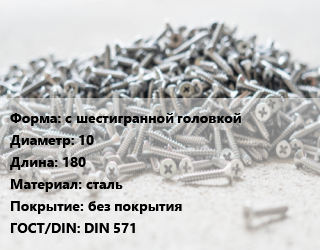 Шуруп с шестигранной головкой 10х180 сталь без покрытия ГОСТ: DIN 571