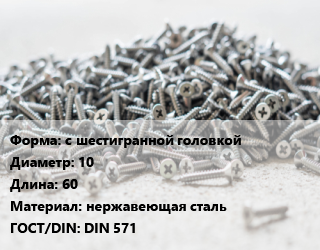 Шуруп с шестигранной головкой 10х60 нержавеющая сталь ГОСТ: DIN 571