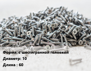 Шуруп с шестигранной головкой 10х60 сталь без покрытия ГОСТ: DIN 571