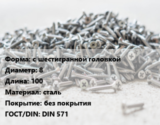 Шуруп с шестигранной головкой 8х100 сталь без покрытия ГОСТ: DIN 571