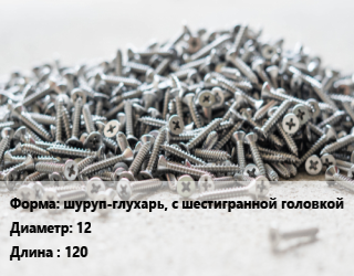 Шуруп шуруп-глухарь, с шестигранной головкой 12х120 сталь оцинкованный ГОСТ: DIN 571