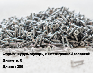 Шуруп шуруп-глухарь, с шестигранной головкой 8х200 сталь оцинкованный ГОСТ: DIN 571