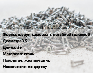 Шуруп шуруп-саморез, с потайной головкой 3.5х35 сталь желтый цинк по дереву